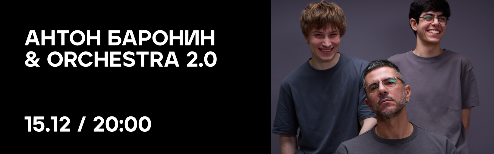 15 Дек 20:00 Понедельник от 1800р Антон Баронин & Orchestra 2.0 Известный пианист со своим авторским проектом Забронировать